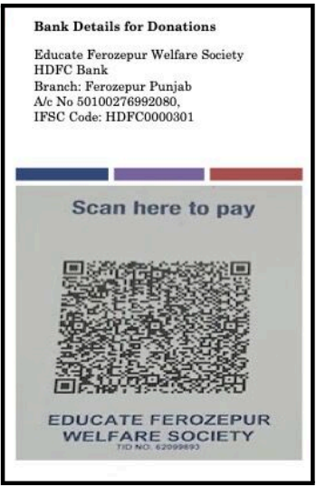 Individuals can donate to Educate Ferozepur through various channels, including QR code, bank transfer, or online platforms.