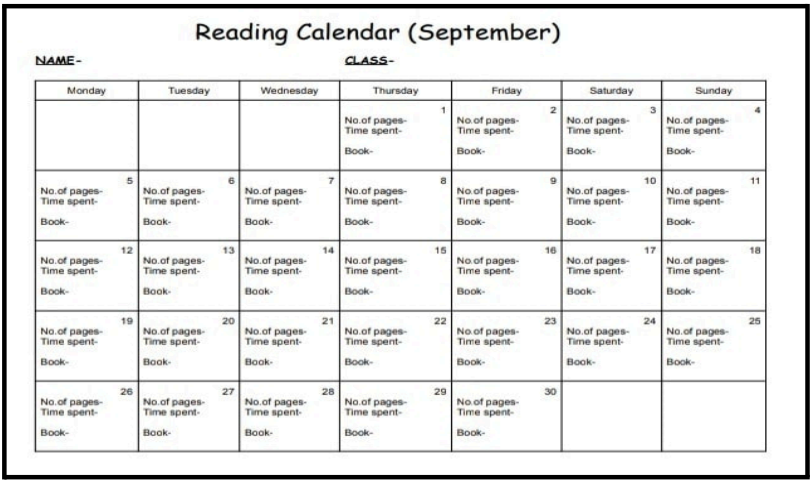 The Reading Calendar initiative aims to enhance students' reading habits by providing them with a monthly reading calendar. Additionally, we furnish each student with a book from the library, facilitating the development of their reading skills.
